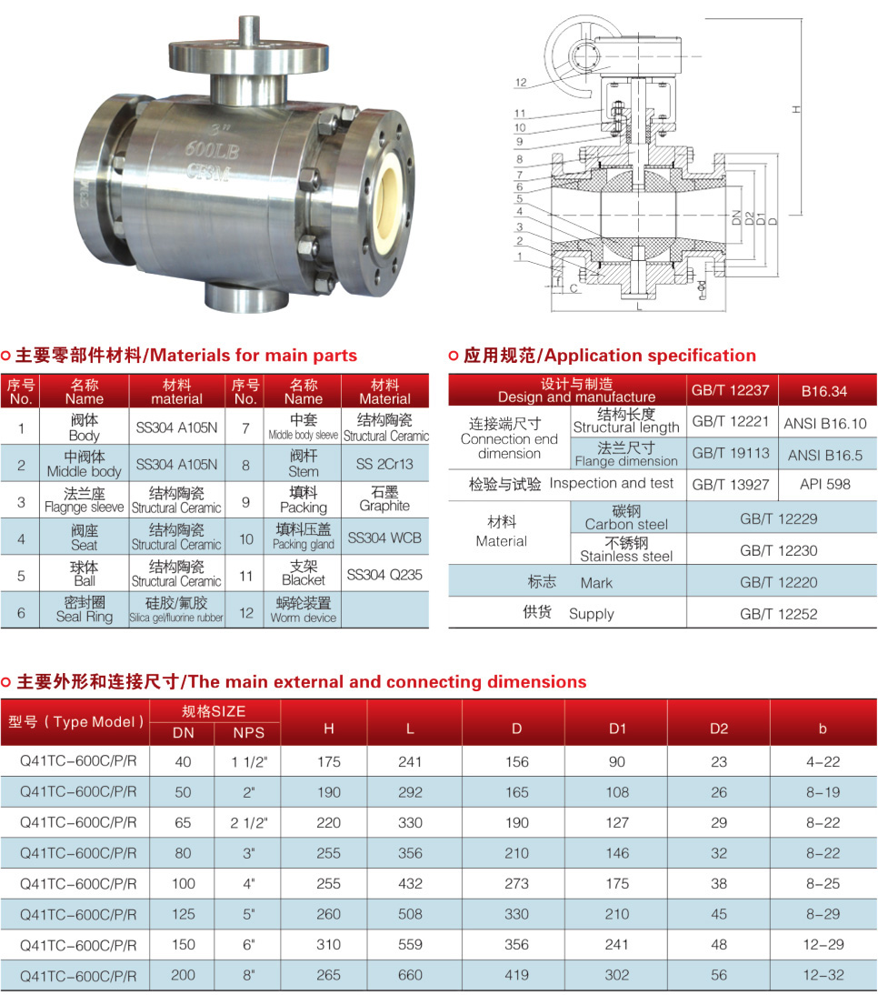 本阀适用于高硬度的粉粒或有款颗粒但又有腐蚀性介质管.上作启之用公称64mpa,适应温度≤250°C。所有与介质接触部分均为结构陶瓷,其化学稳定性加上极高硬度(硬度HRA88以上,仅次于金刚石),因此,陶瓷具有极高的耐磨损、耐高温、耐腐蚀、耐冲蚀、隔热性能良好。