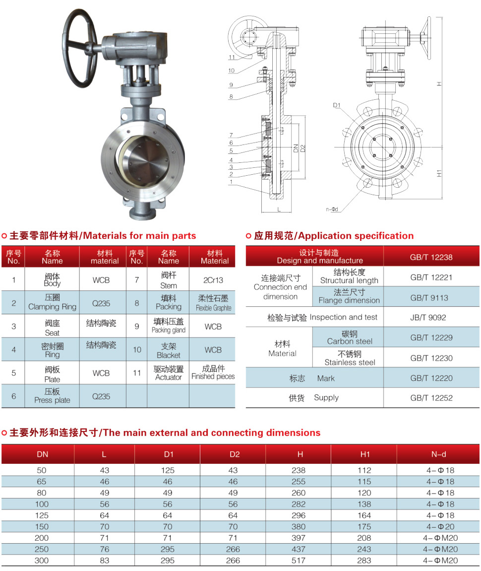 陶瓷蝶阀是一种结构简单的调节阀,也可用于低压管道介质的开关控制采用结构陶瓷做密封副,其优良的耐腐蚀、耐高温、耐磨损及耐冲蚀性能可广泛应用于石化、冶金、造纸、电站、炼油、煤炭等行业的各类酸碱盐气体、液体、高温蒸汽、泥浆和灰渣输送系统中作调节流量或切断介质。运动部分均采用结构陶瓷材料,弧面接触加工。采用偏心结构,减小运动部分的摩擦,延长阀门的使用寿命。蝶阀部分材质可依用途更换,适用于多种高磨损、高温、高腐的特殊工况。驱动方式有手动、气动、电动等。小巧轻便,容易拆装及维修,并可在任意位置安装。结构简单、紧凑,操作扭矩小,90° 回转开启迅速。流量特性趋直线,调节性能好。