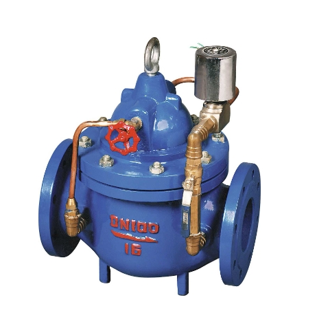 主阀、电磁导阀、针阀、球阀、微形过滤器和压力表组成水力控制接管系统。通过电磁导阀可以实现对阀门开启和关闭的遥控。加装附加装置后,可控制开启和关闭的速度。本产品利用导阀控制阀门的开启和关闭,节省能源。可代替其它阀门大型电动装置。本系列阀门产品广泛用于高层建筑、生活区等供水管网系统及城市供水工程。